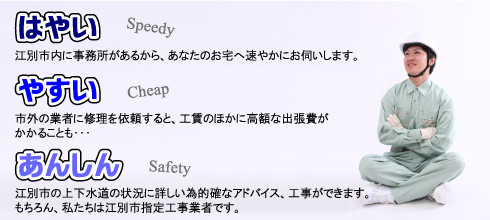 下水道をお使いになっている場合、敷地内にある排水管など(排水設備)の修理は、江別市公共下水道条例によって「指定工事業者」でなければ施工できないことになっています。