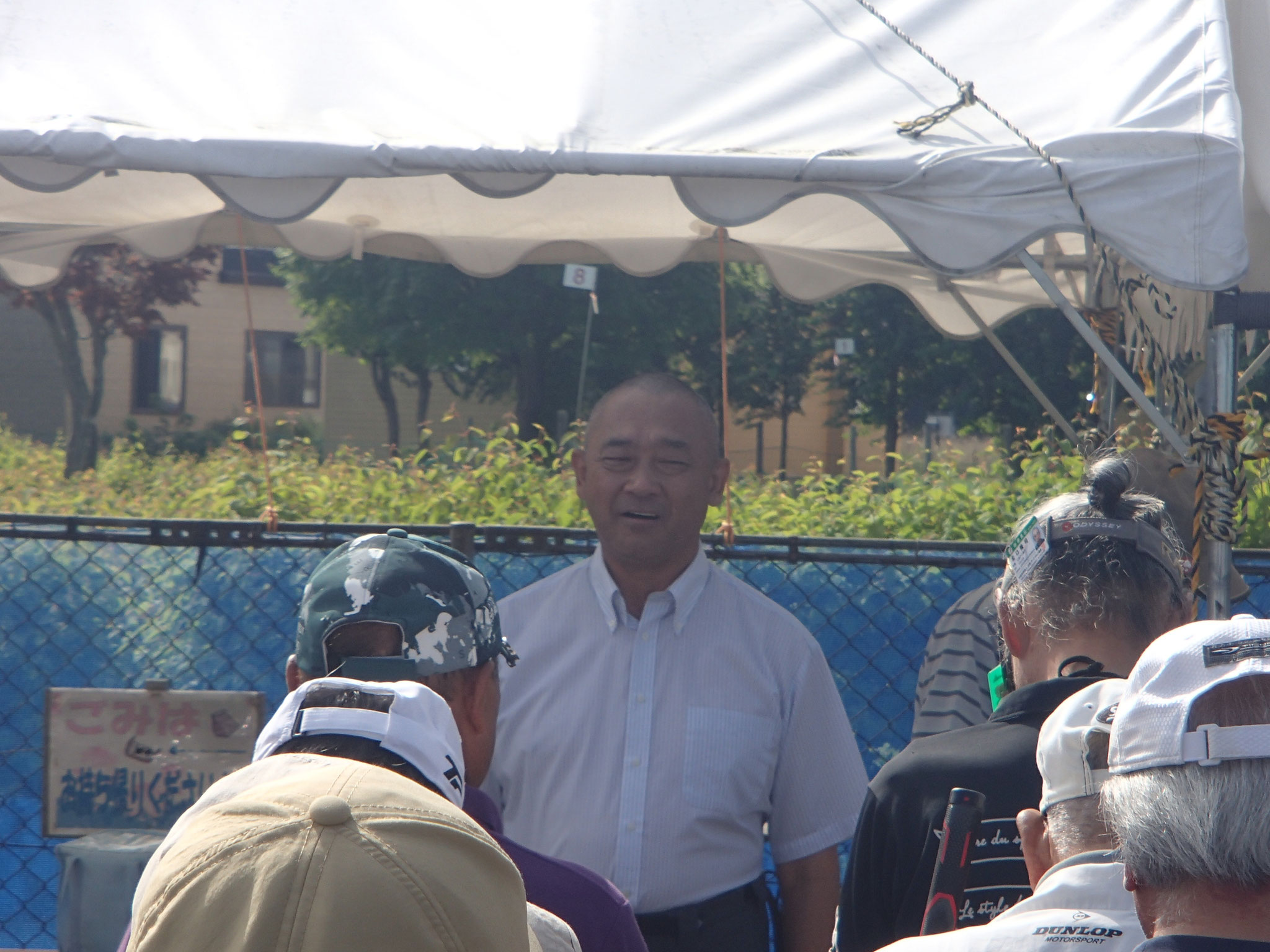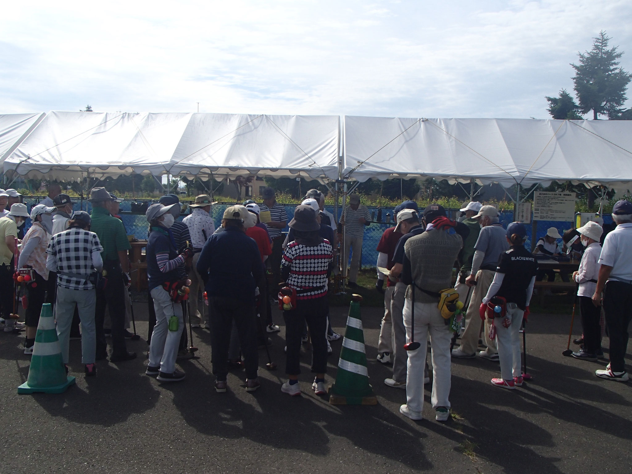 江別管工事業協同組合は、江別市高齢者クラブ連合会の会員の健康増進と交流を図る目的で開催されているパークゴルフ大会に協賛しています。この日は本選に向けての江別C地区の予選会が行われ、あけぼのパークゴルフ場にて、井上専務理事が挨拶をしました。