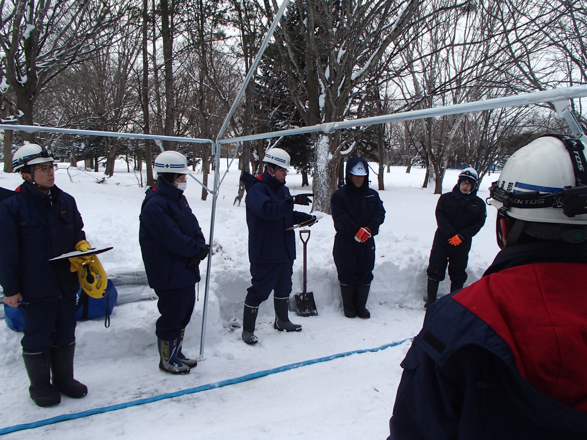 技術運営委員会の技術部会は、1月14日に江別市水道部と共催で、大麻東公園内にある緊急貯水槽の冬季訓練を行いました。災害時の断水を想定して、22名が参加しました。江別市内には、災害時でも給水できるように6箇所の緊急貯水槽と2箇所の災害時給水栓が設置されています。