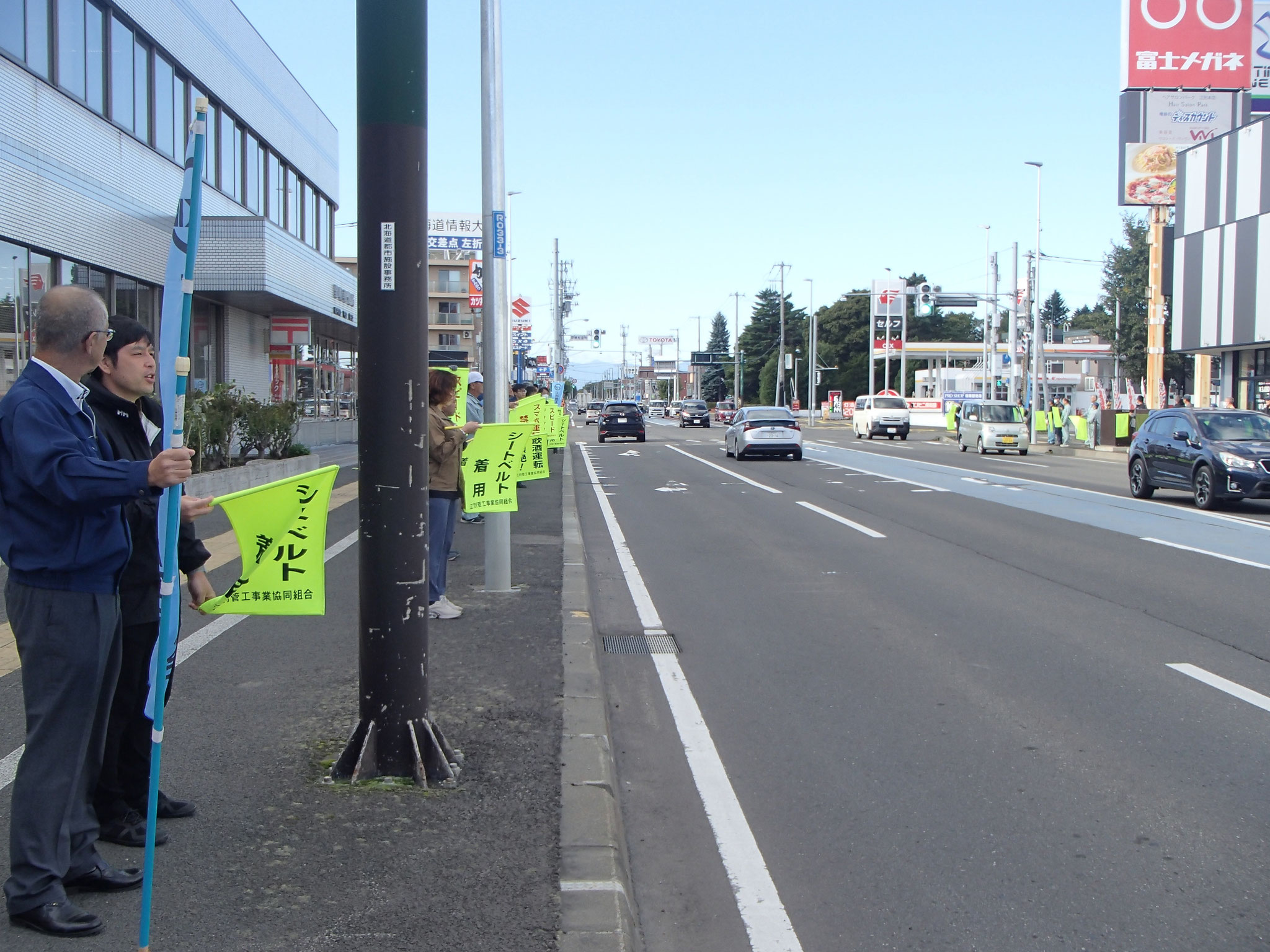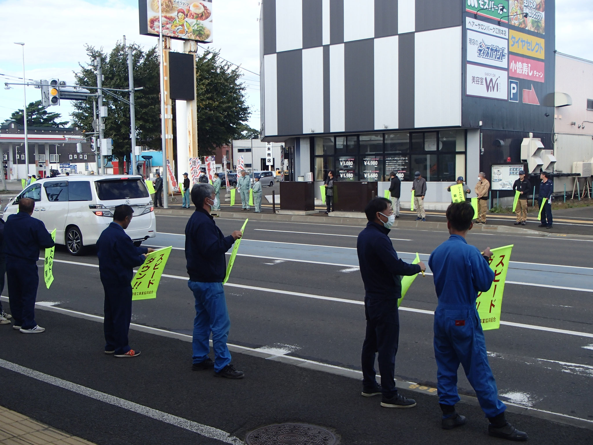 技術運営委員会の安全部会は、9月22日に秋の全国交通安全運動の一環として、野幌交番前の国道12号線沿いで旗の波街頭啓発を行いました。75名が参加しました。旗の波街頭啓発の実施は今年で14年目、48回目となります。