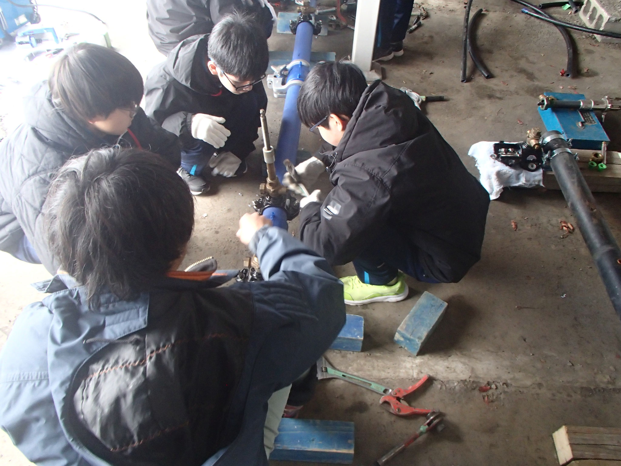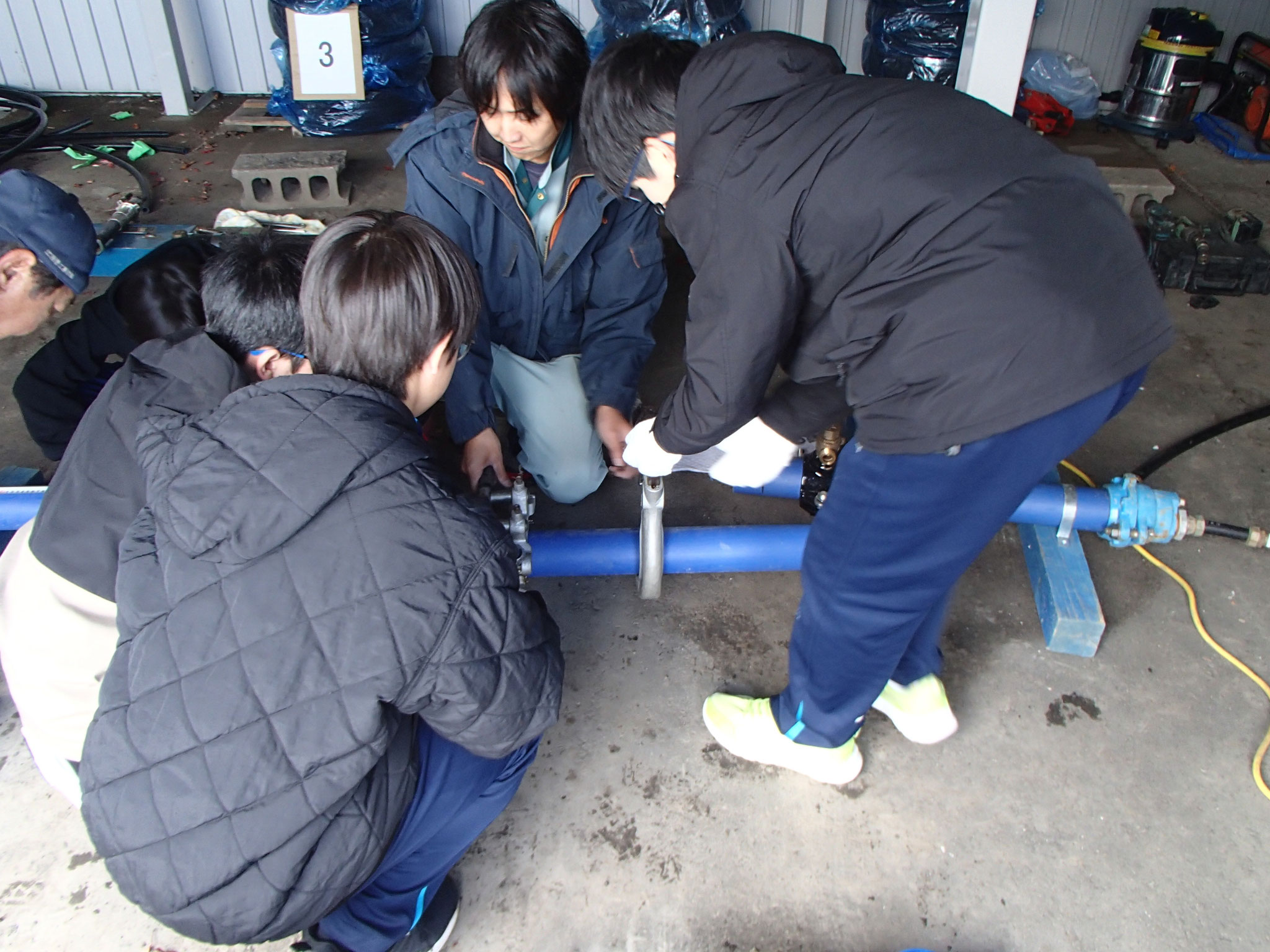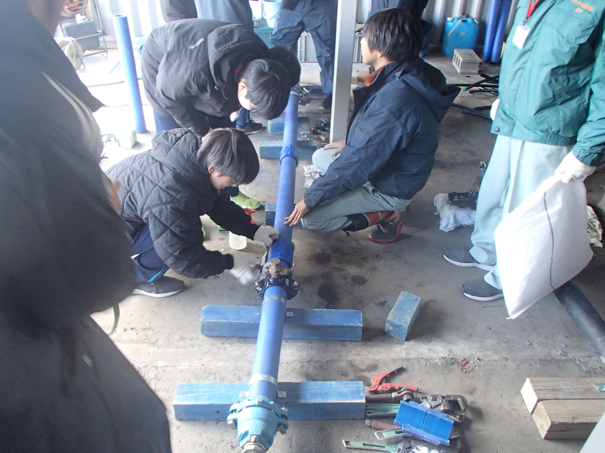 技術運営委員会の事業部会は、江別市教育委員会が実施するキャリア教育「中学生の職業体験学習」として、中学生に水道工事の知識や技術を体験してもらい、働くことの意味や、職業についての理解を深めてもらうための学習活動に協力しました。10月28日・29日に中央中学校から6名が体験学習に訪れました。