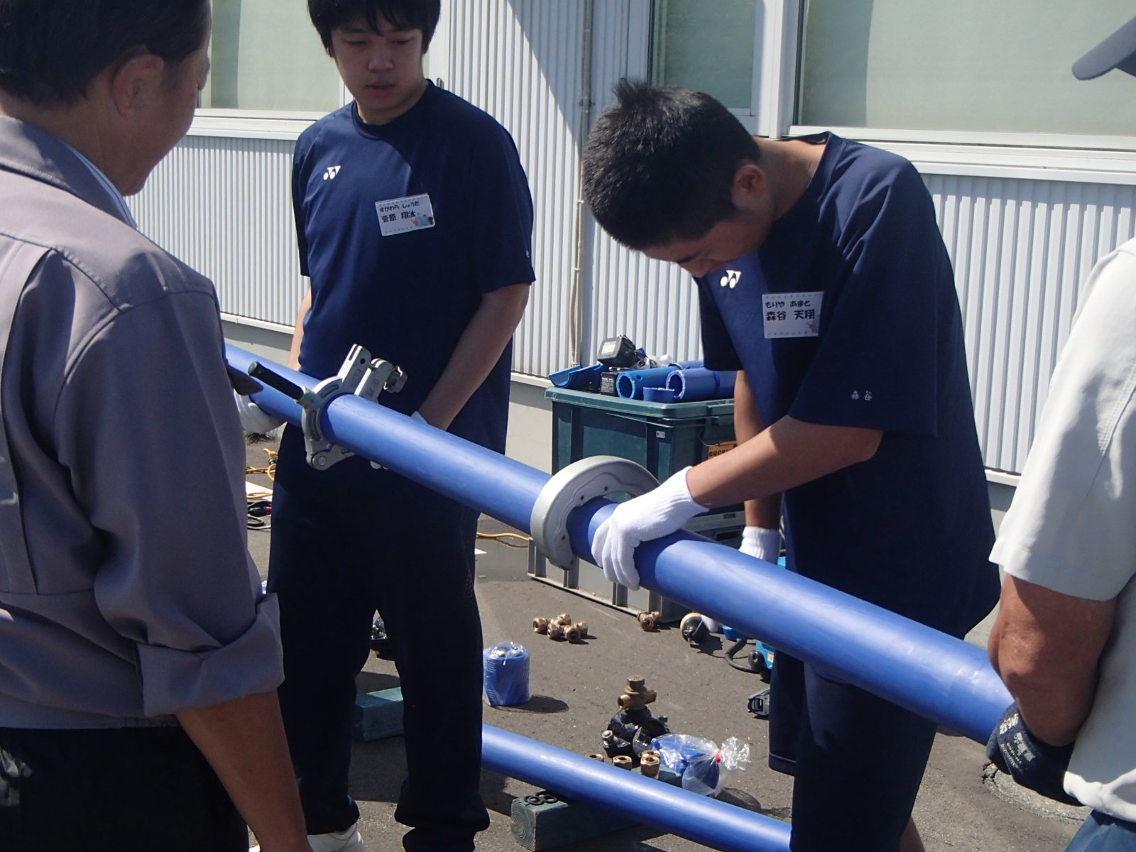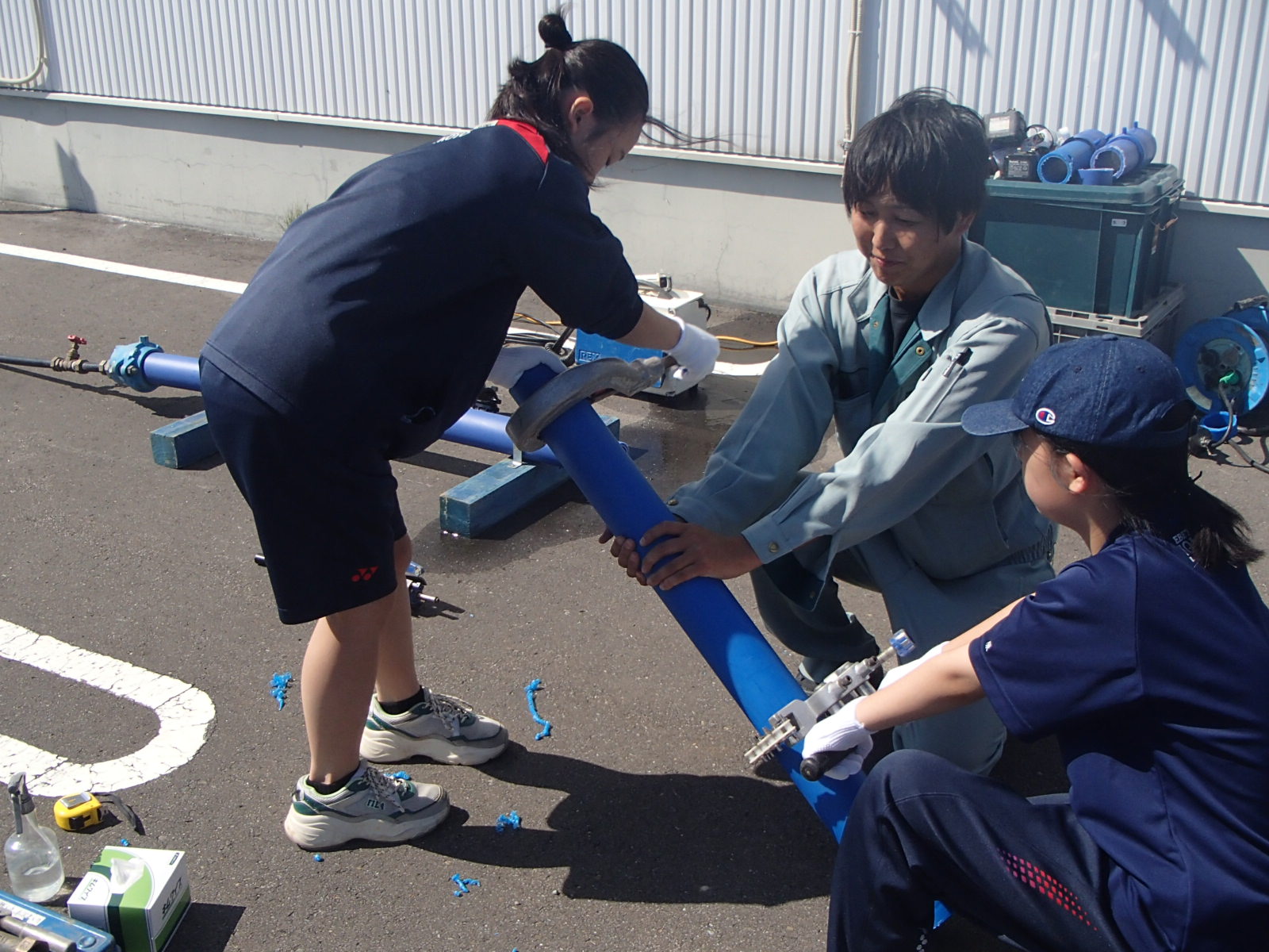技術運営委員会の事業部会は、江別市教育委員会が実施するキャリア教育「中学生の職業体験学習」として、中学生に水道工事の知識や技術を体験してもらい、働くことの意味や、職業についての理解を深めてもらうための学習活動に協力しました。9月10日・11日に江陽中学校から8名が体験学習に訪れました。